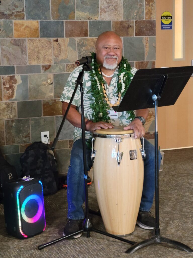 Attendees were able to enjoy samples of healthy recipes and learn about creating a more healthful home food environment. Some participants tested their knowledge of nutrition and won prizes in a game of Nutrition Jeopardy. And, this year, we were fortunate to have a local musician volunteer to provide background music with a Pahu drum, ukelele, and vocals. At the end of the fair, we awarded gift bags to three raffle winners.