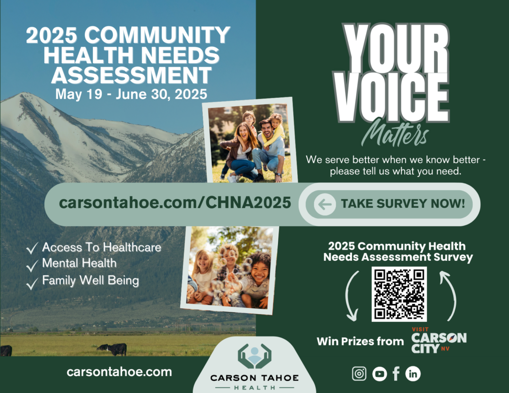 Carson City, NV – Carson Tahoe Health invites community members to participate in its 2025 Community Health Needs Assessment (CHNA) survey, open now through June 30, 2025. This brief, anonymous survey is a vital opportunity to share your thoughts on the most pressing health issues facing our community and help shape the future of local healthcare.